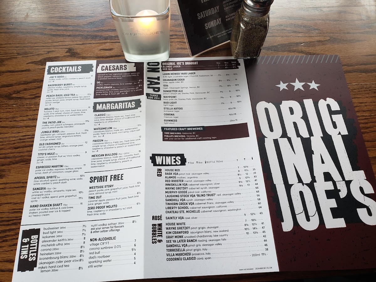 Original Joe's Duncan Menu
